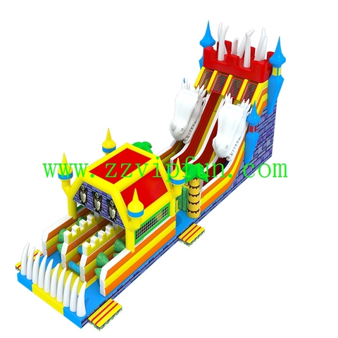 Popolare grande scivolo colorato gonfiabile per bambini all'aperto doppio corsia gonfiabile scivolo a secco per parco divertimenti